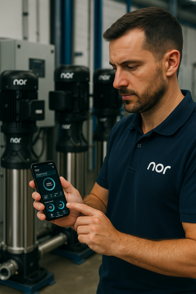 En NOR Pumps ofrecemos un servicio especializado de puesta en marcha para garantizar que cada sistema de bombeo funcione desde el primer momento con la máxima eficiencia y seguridad. Nuestro equipo técnico se encarga de realizar todas las comprobaciones necesarias: instalación correcta de las bombas, ajuste de los parámetros de control, verificación de presión y caudal, y programación de los variadores de frecuencia.